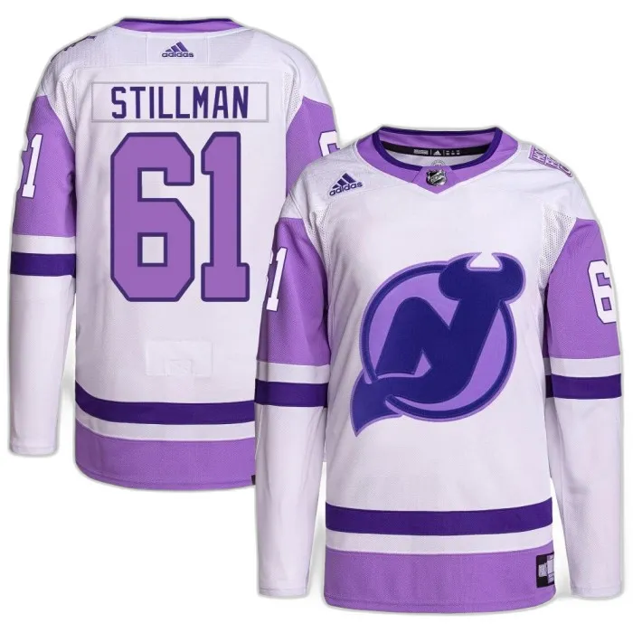 Chase Stillman New Jersey Devils Men's Adidas White/Purple Hockey Fights Cancer Primegreen Jersey - Authentic