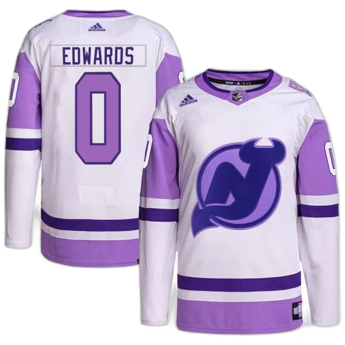 Ethan Edwards New Jersey Devils Youth Adidas White/Purple Hockey Fights Cancer Primegreen Jersey - Authentic