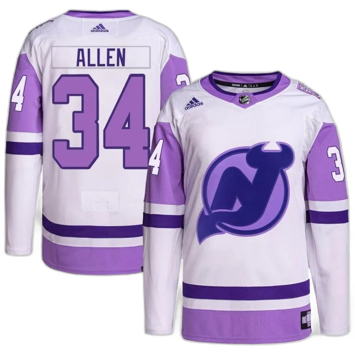 Jake Allen New Jersey Devils Youth Adidas White/Purple Hockey Fights Cancer Primegreen Jersey - Authentic